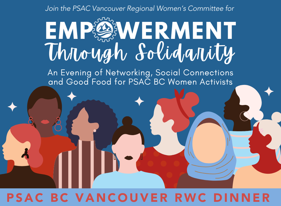 Please share details of this dinner with self-identified PSAC women. PSAC BC Women can self-identify online at https://psacbc.com/self-id/